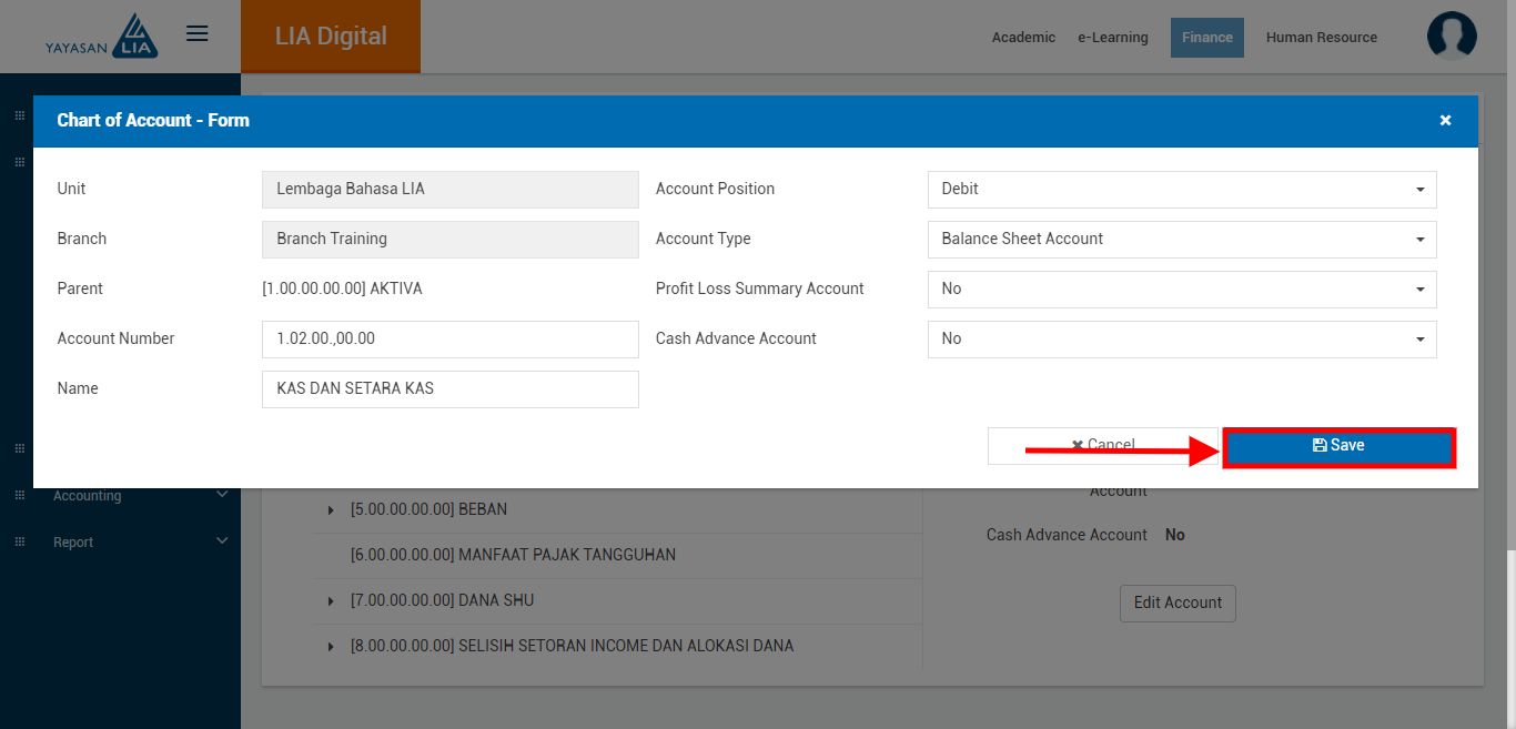 Chart of Account adalah menu yang berisikan bagan akun-akun di dalam yayasan yang memudahkan pencatatan agar menjadi lebih ringkas dan praktis.