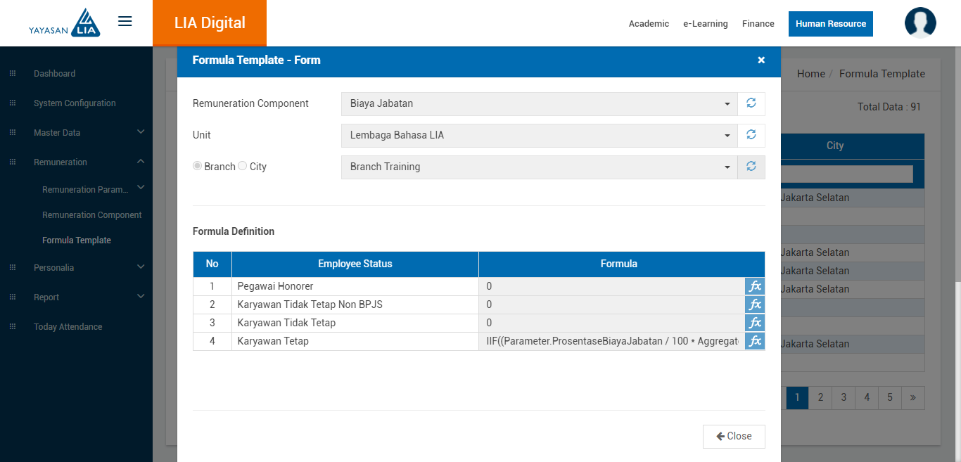 Formula Template adalah menu untuk melihat template formula yang digunakan untuk remunerasi.