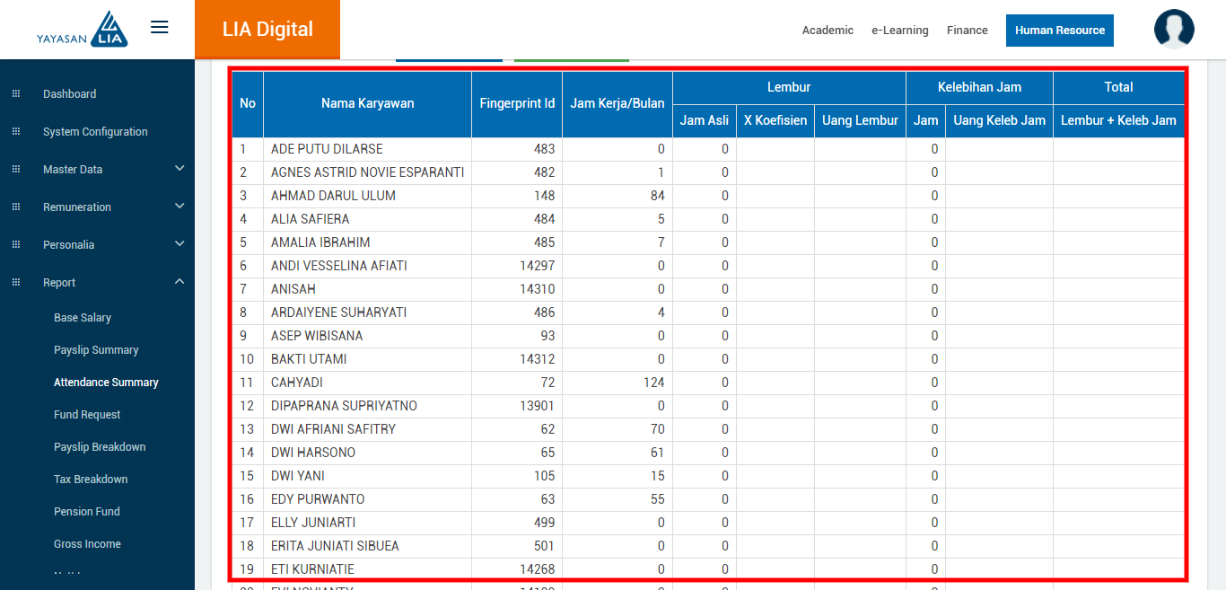 - Employee Social Fund, berisi laporan data siswa lama.